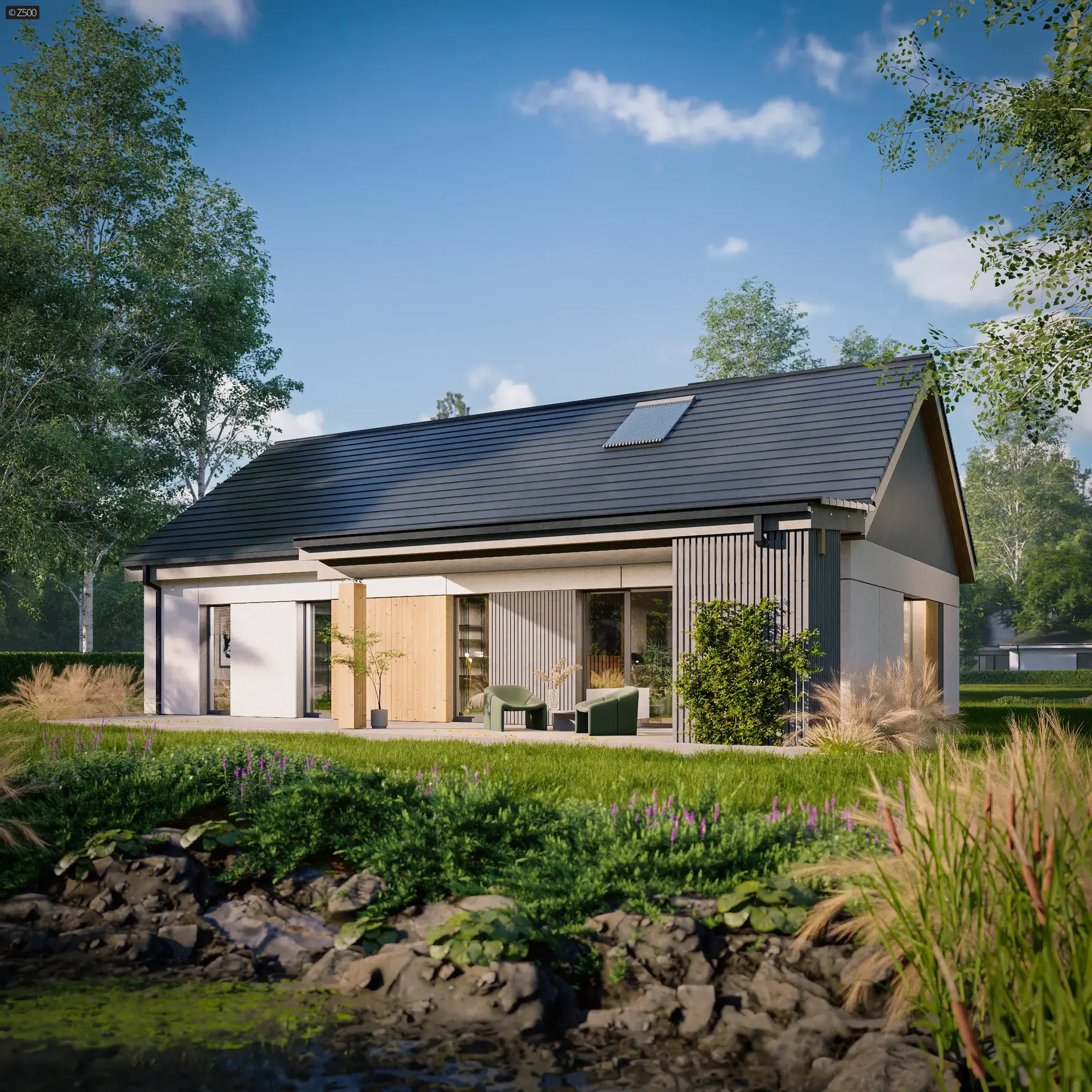 Dėmesio! Demonstruojamos vizualinės iliustracijos parodo, kaip galėtų atrodyti pilnai pabaigtas statyti ir įrengtas namas. Tai yra namo projekto autoriaus architektūrinė vizija. Nors išorės ir vidaus vizualizacijos realistiškai atspindi, kaip realiai atrodys namas, galutinė namo projekto dokumentacija po pakeitimų ar kitokių pritaikymų gali skirtis, tad bendras namo vaizdas gali skirtis nuo namo išvaizdos, pateiktos vizualizacijoje. Projekto vizualizacijas draudžiama naudoti be mūsų rašytinio leidimo.